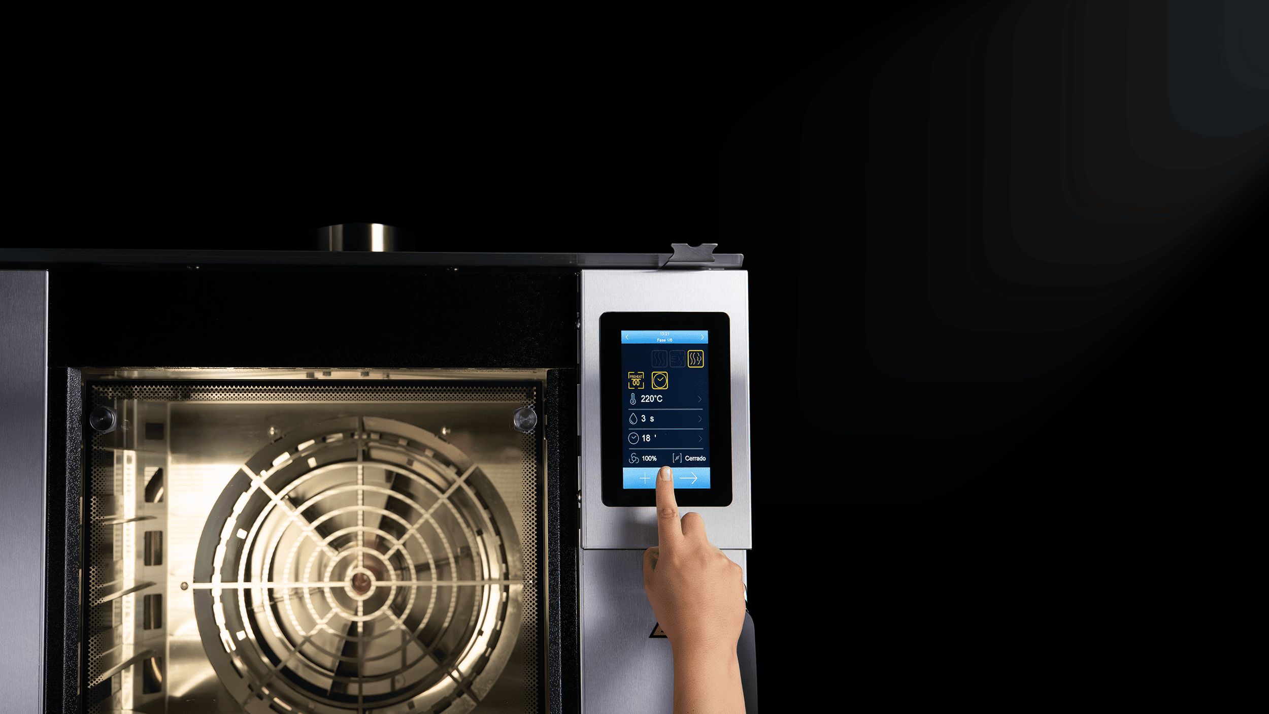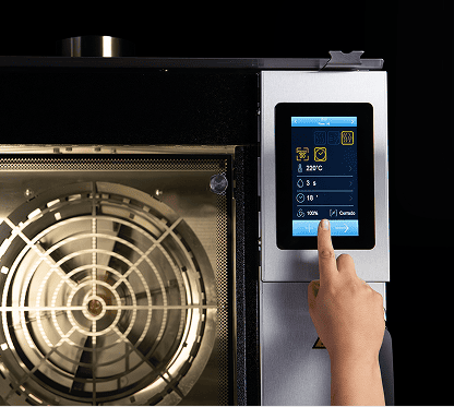 De manejo sencillo y rápido, ofrece control total de temperatura, tiempo y vapor con solo tocar la pantalla.